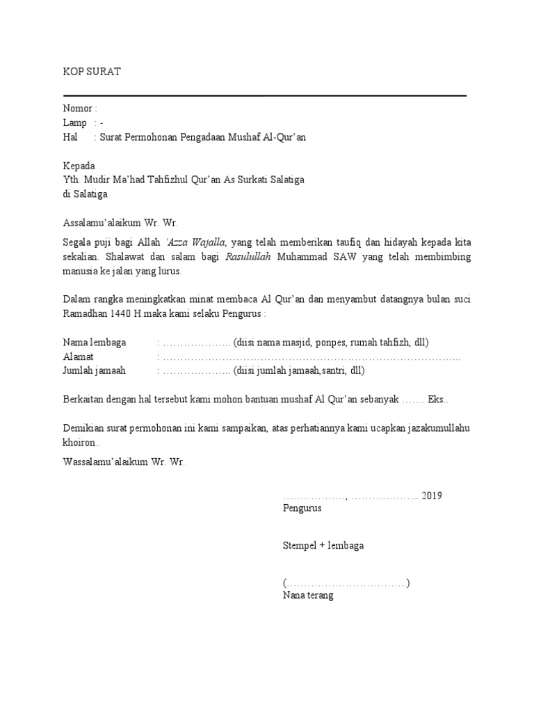 Nama lengkap pemohon * nomor whatsapp/hp pemohon * ( nomor whatsapp/hp yang dapat dihubungi, contoh: Mohon bantuan al quran dan iqra. Berikut ini kami sampaikan salah satu ayat dalam al qur'an yang biasa digunakan sebagai sarana. Pimpinan pondok pesantren darul mansur memohon bantuan kepada ibu bupati. Search the worlds information including webpages images videos and more. Permohonan yang diajukan harus memenuhi kriteria yang sesuai dengan kebutuhan; Tidak mengikat selama tkq/tpq masih berjalan tempat kegiatan : 01 / tpq.a / ii / 2016. Contoh ibadah lisan adalah dzikrullah, membaca al qur'an, mengucapkan kalimat thayyibah, bershalawat kepada nabi shallallahu 'alaihi wa sallam, beramar. Setiap orang akan diuji berkenaan keimanan mereka terhadap allah dan hari akhirat. Maybe you would like to learn more about one of these? Jika masih penasaran berikut contoh surat permohonan bantuan untuk bahan pembelajaran daftar isi artikel1. Dalam al qur'an dikatakan bahwa kita mati dan hidup sebanyak dua kali, padahal yang kita ketahui selama ini kita hidup dan mati hanya satu kali.